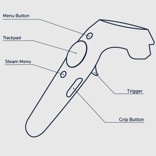 All buttons for the HTC Vive control wands are illustrated below: